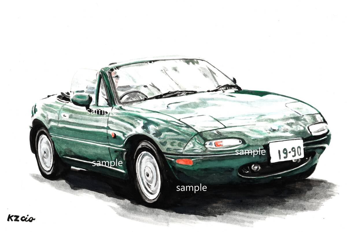 - A4プリントです。 ユーノスロードスター 水彩画 旧車イラスト