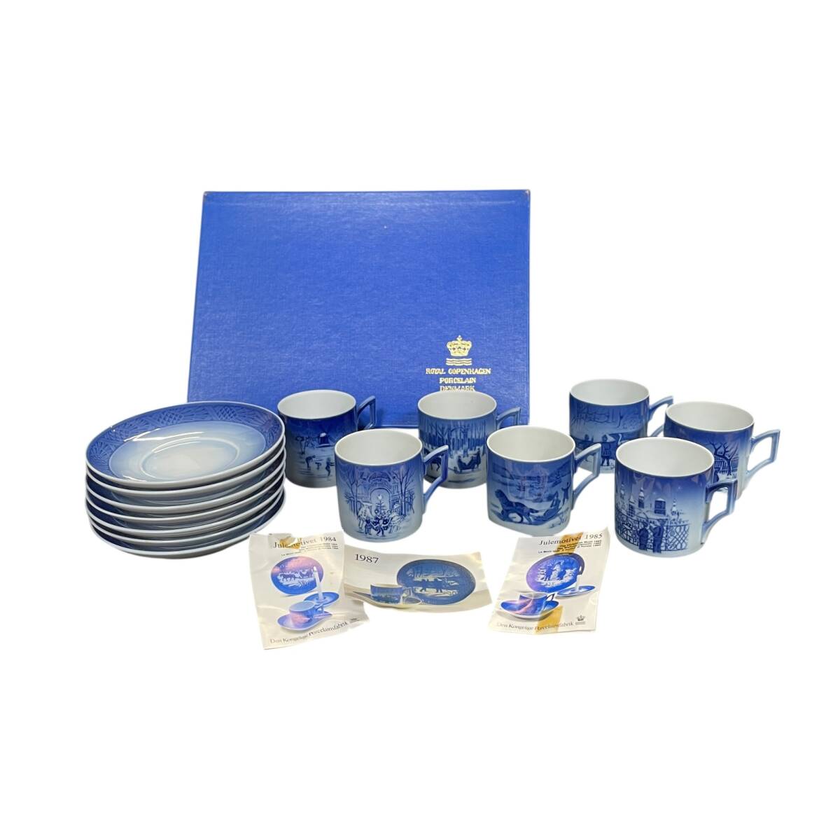 - ◆中古品/長期保管品◆ Royal Copenhagen ロイヤルコペンハーゲン イヤーカップ&ソーサー 1984-1990 7客 セット クリスマス kyQ17167N
