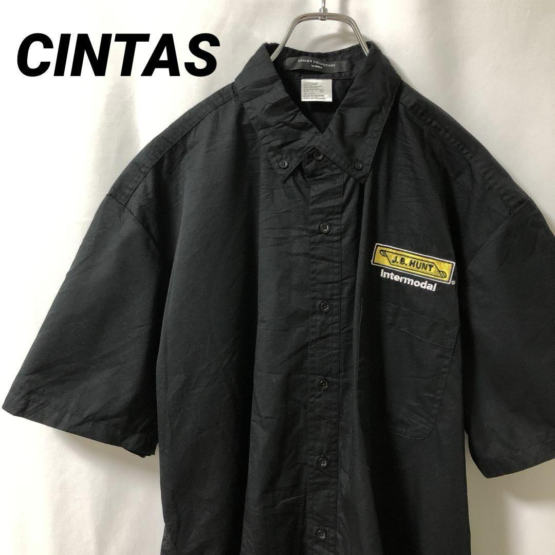 > N-4742 CINTAS シンタス アメリカ古着 ワークシャツ ボタンダウン 半袖 企業ロゴ 刺繍 L ブラック 黒シャツ メンズ