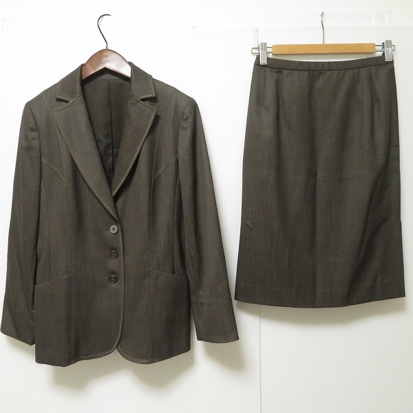 > #anc レリアン Leilian スカートスーツ セットアップ ツーピース 9 グレー系 ステッチ イタリア製生地 レディース [945152]