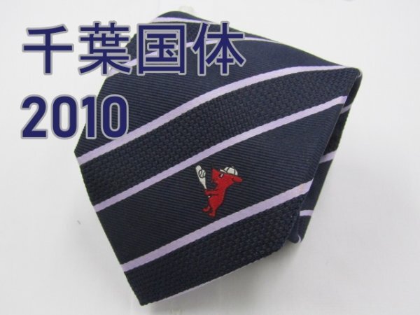 - 【ご当地】 【千葉国体 2010】 E 716 千葉国体 2010 ネクタイ 紺系 ストライプ キャラクター ジャガード