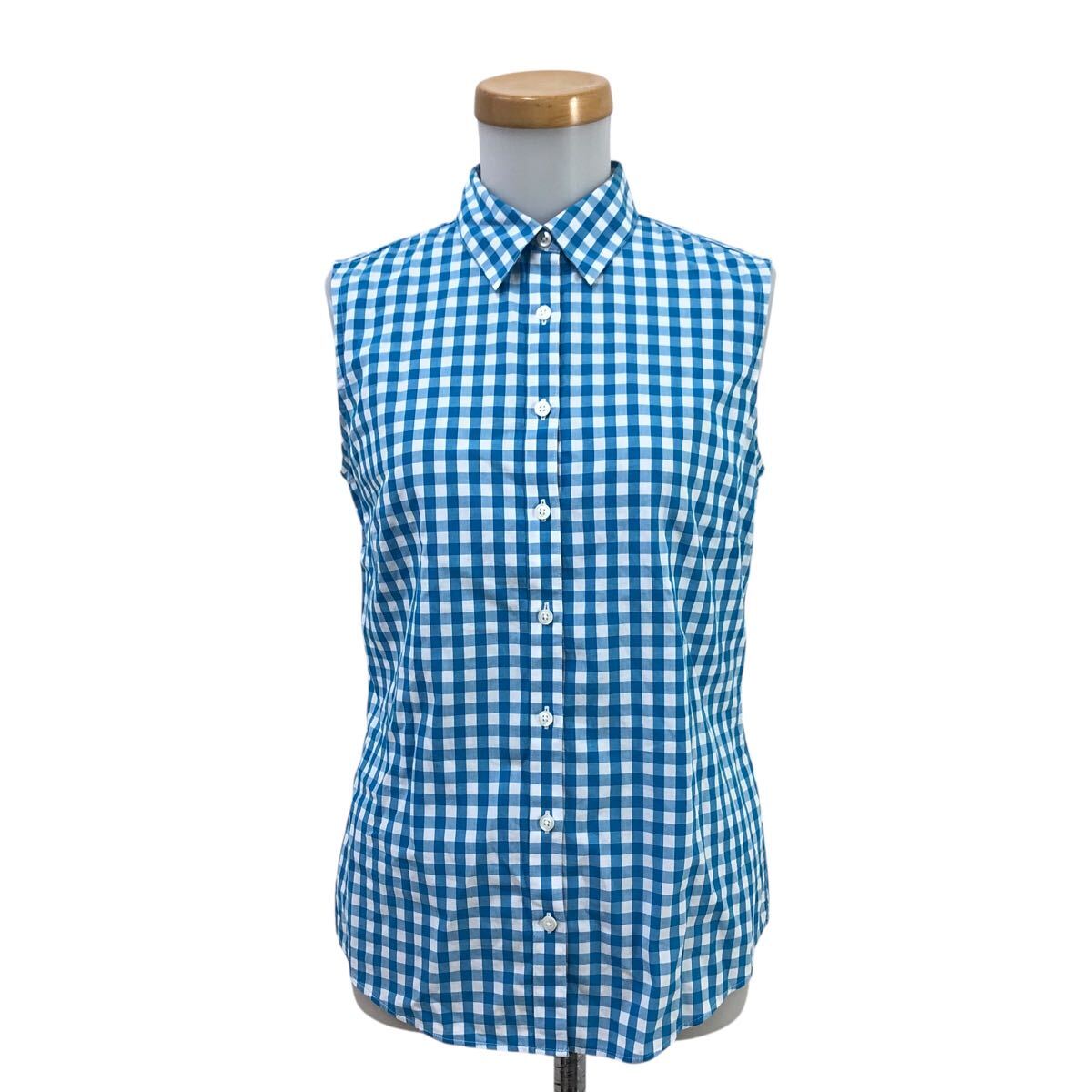 > Nm312-6 美品 BROOKS BROTHERS ブルックスブラザーズ チェック 柄 ノースリーブ ブラウス シャツ トップス ブルー系 水色 レディース 2