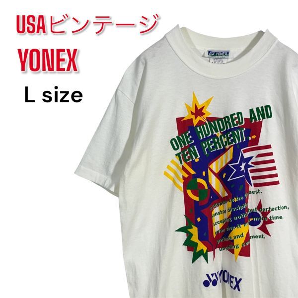 - 90s ビンテージ YONEX ヨネックス USA製 半袖Tシャツ 白 Lサイズ ヴィンテージ シングルステッチ