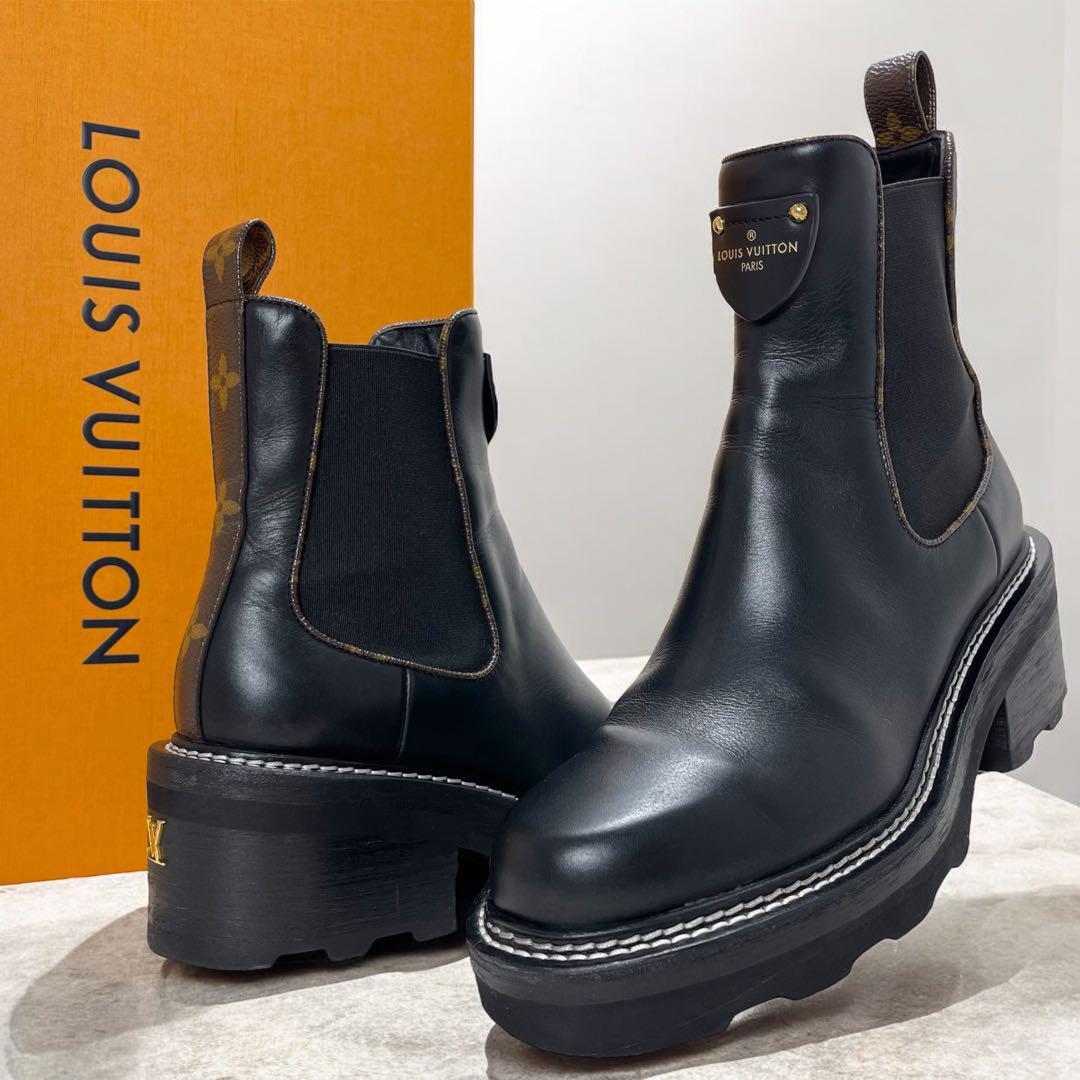 > 【現行/極美品】LOUIS VUITTON ルイヴィトン LVボブールライン サイドゴアブーツ アンクルブーツ LVロゴ モノグラム レザー 黒 イタリア製