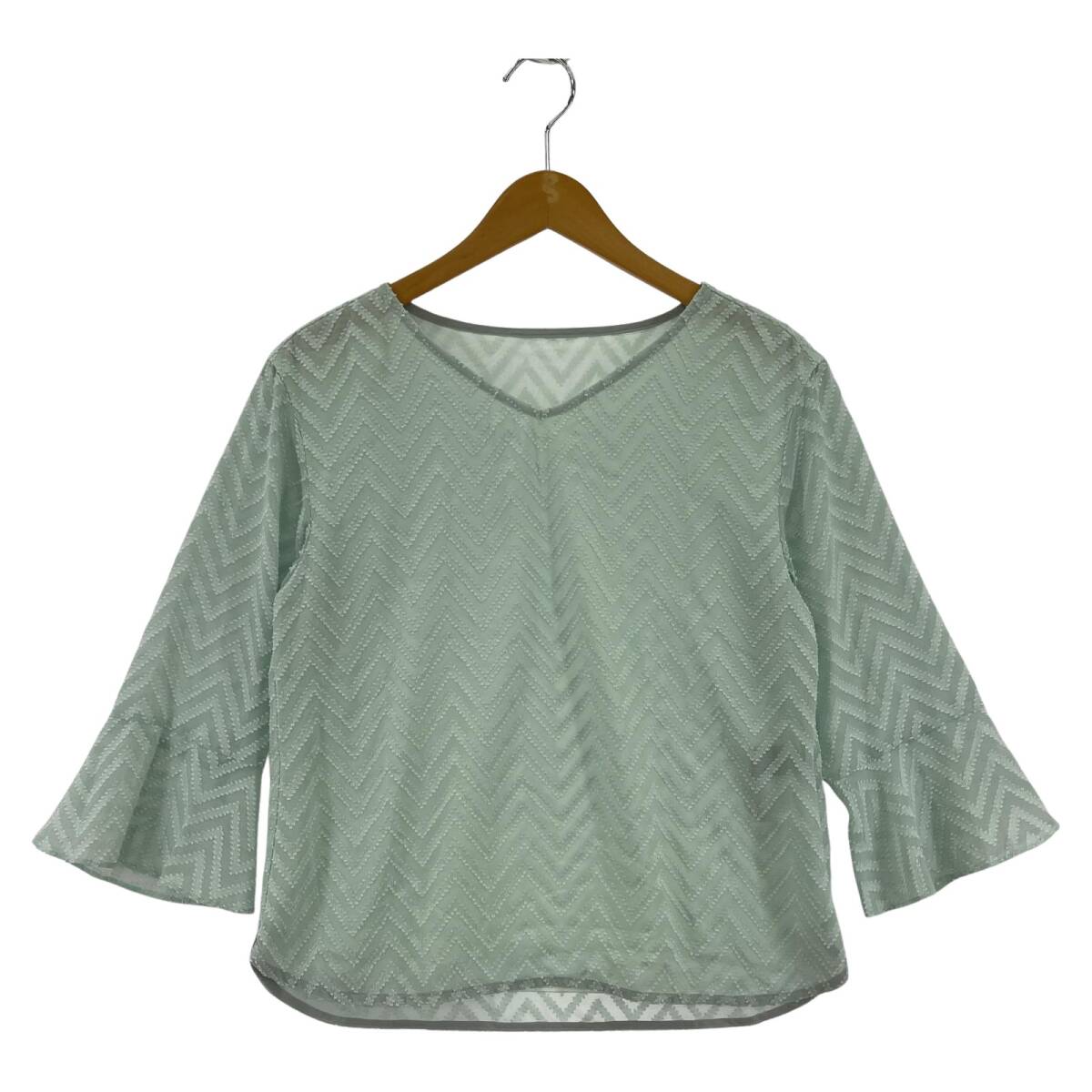- COUP DE CHANCE クード・シャンス ジャガード 七分袖 シアー ブラウス size38/ライトグリーン ゆうパケットOK
