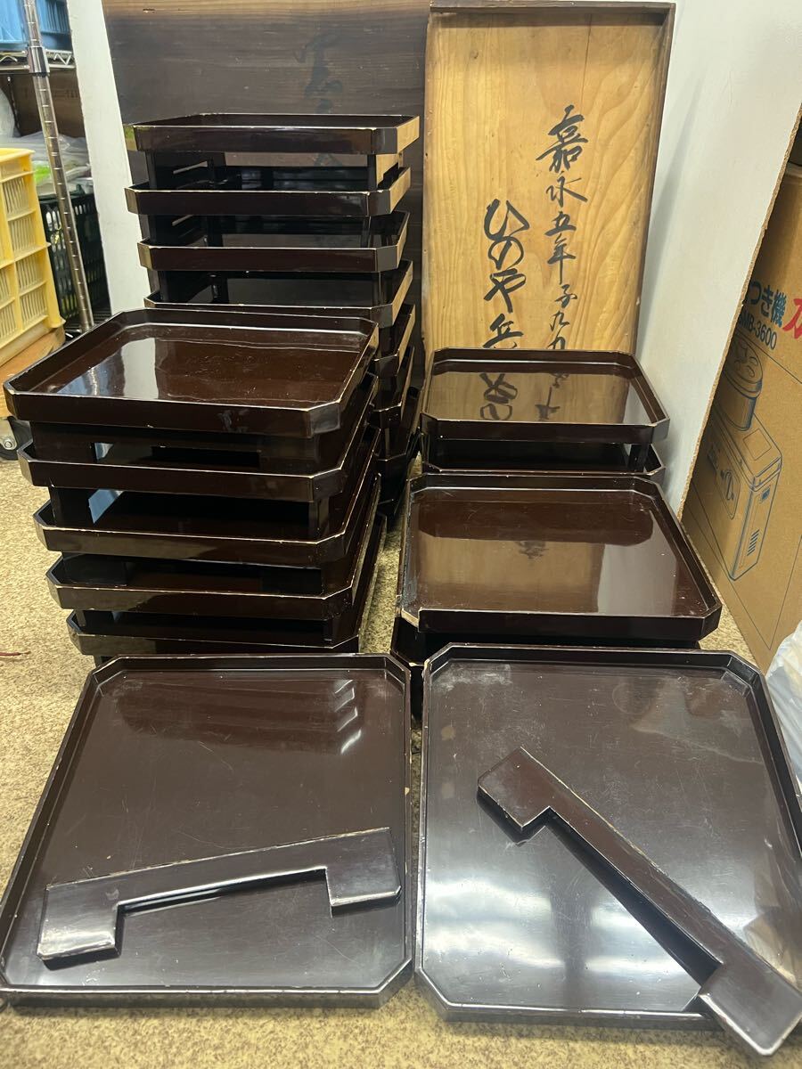 - 【ヤ180】窯夜食膳 廿人前 時代物 嘉永五年 ひのや兵介 漆塗 脚付き うるし 当時物 お膳 木製漆器 木製 骨董品 レトロ アンティーク