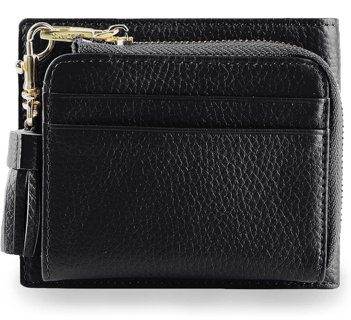 - ① 2つ折り財布 レディース 本革 ミニ財布, コンパクト,カード収納10枚, ブラック