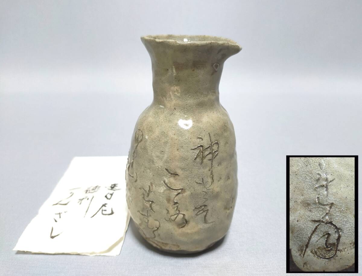 - TW27 京焼 酒器 太田垣 蓮月 造 自詠和歌文 徳利 花入 花瓶 高13.2cm 時代