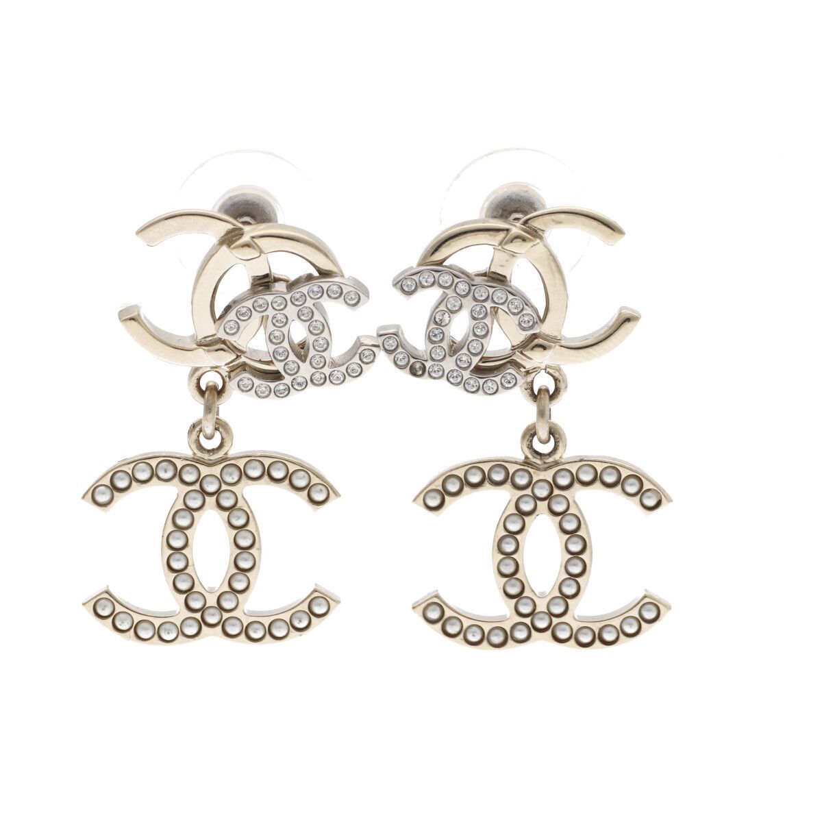 - 【中古CHANEL シャネル ココトリプル ラインストーンピアス B21 A CCマーク シャンパンゴールド ×シルバー 24020238 QB