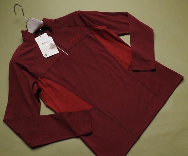 - 新品正規 Marmot マーモット 海外限定 メランジ天竺 ハーフジップ ロングTシャツ レディース90(S)ワイン(WI) 直営店購入 TSF6502