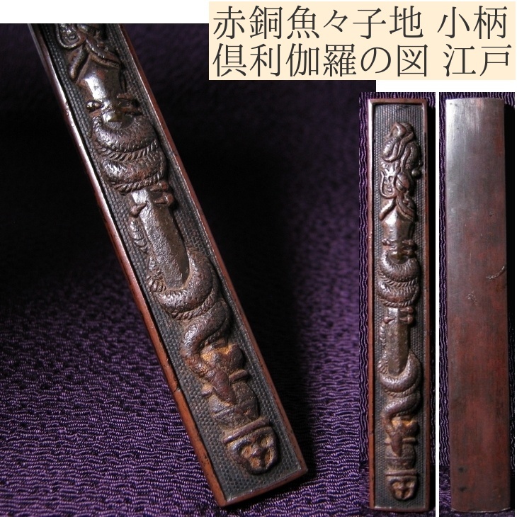 - 時代武具 赤銅魚々子地小柄 倶利伽羅の図 桐箱付 江戸時代/25a007
