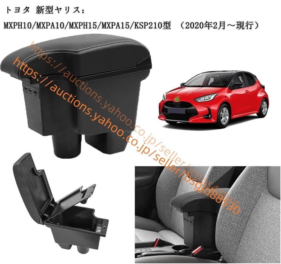 > トヨタ ヤリス R2.2-現行 車用アームレスト コンソールボックス USB充電ポート付き 二層タイプ 多機能 NEW YARIS car-289