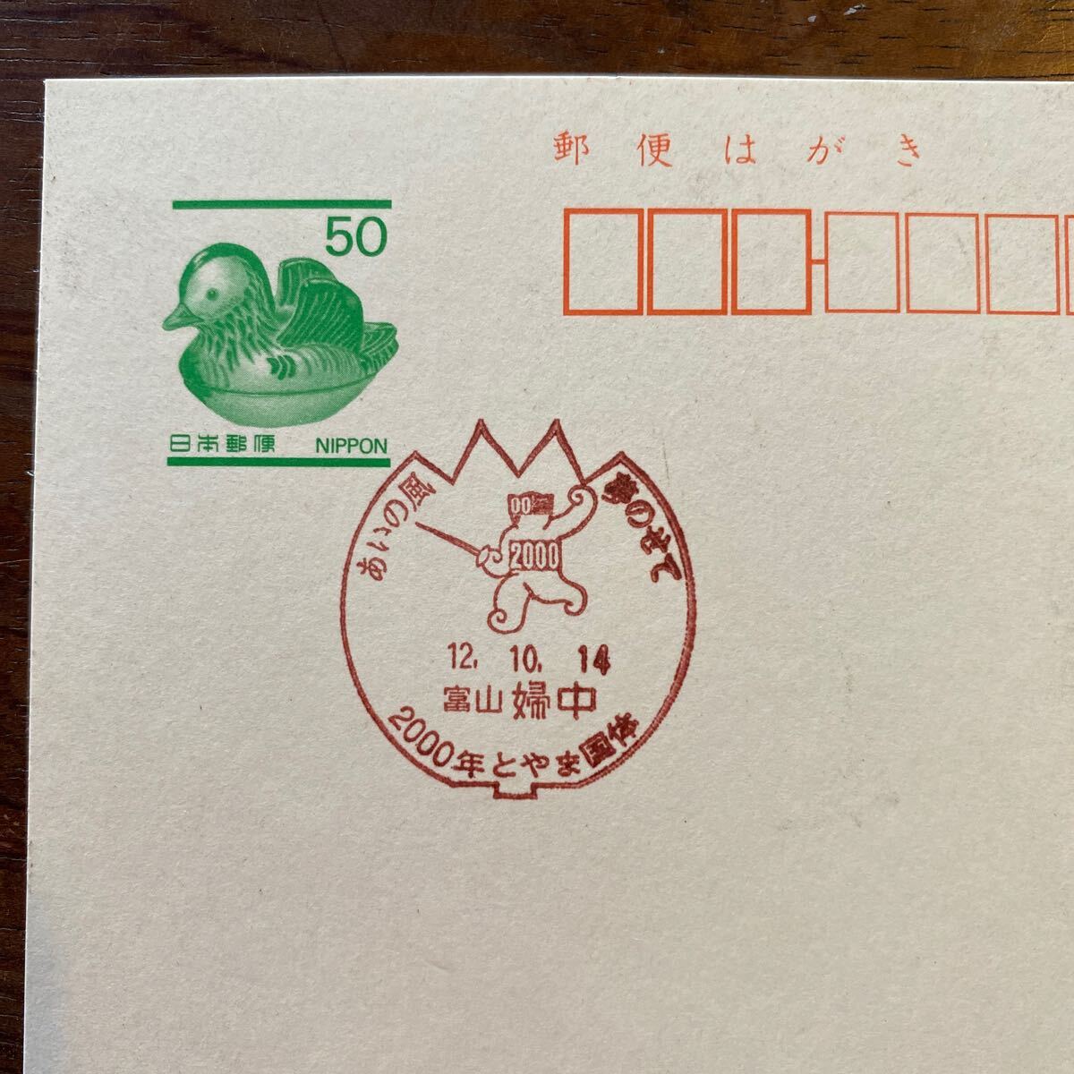 - [猫] 鴛鴦はがき 初日風景印 富山婦中 H.12.10.14