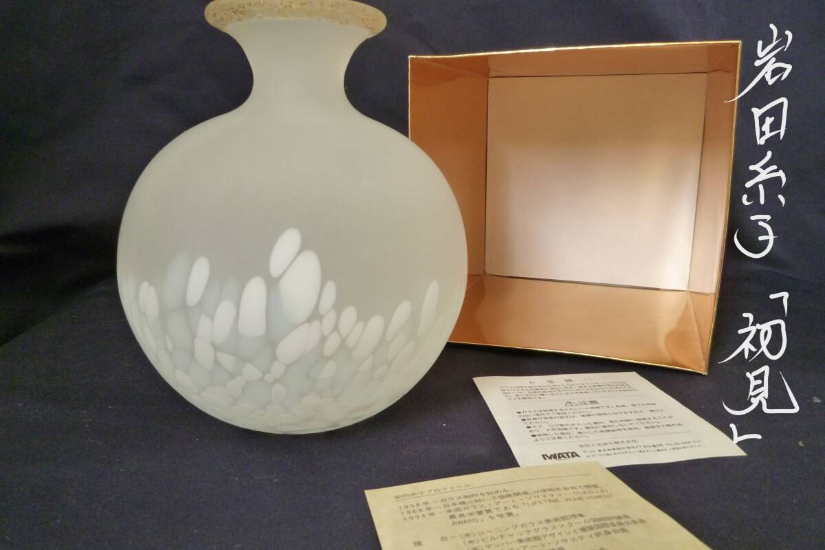 - 未使用品 岩田糸子のガラス花瓶(初見)花入 花器 金箔 置物 オブジェ
