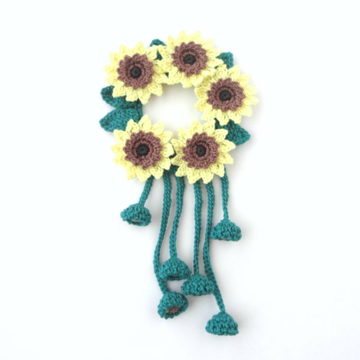 - ひまわりのシュシュ*レース編み*ハンドメイド*ヒマワリ*向日葵*サンフラワー*b856∵再販×19∵