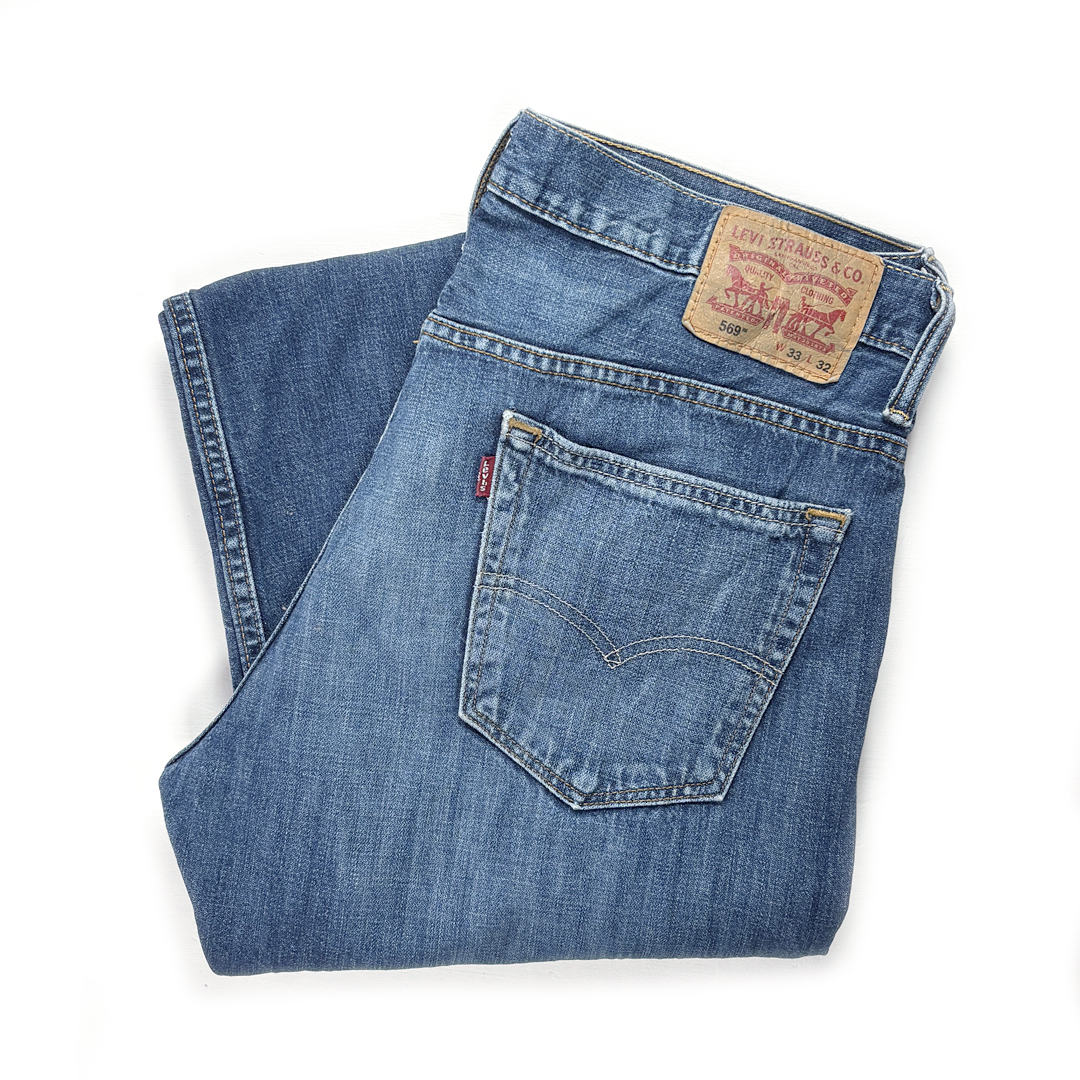- 【送料無料】リーバイス 569 ワイドルーズストレート 雰囲気◎ ヒゲ 膝クラッシュ ジーンズ W36相当 Levis 古着 @EA9166
