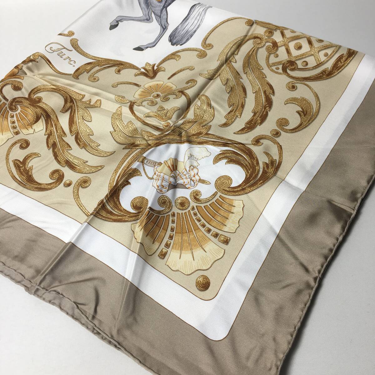 - 76B234|美品|エルメス カレ 90 スカーフ シルク グレージュ
