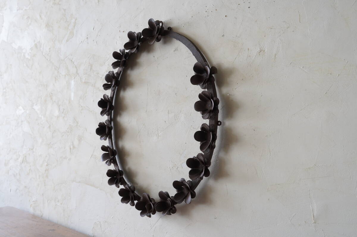 - 古道具 オブジェ アイアン 鉄製 シャビー アクセサリー インド インテリア ディスプレイ 置物 壁掛け 花 フレーム