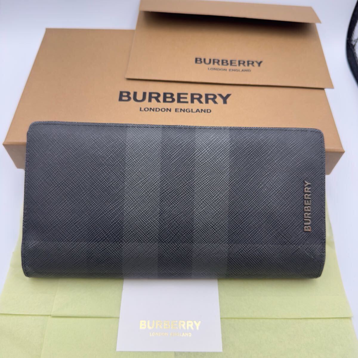 - 極美品 バーバリー 長財布 チャコールグレー チェック PVC 小銭入れ付き ブラック メンズ 二つ折り財布 カードケース コインケース