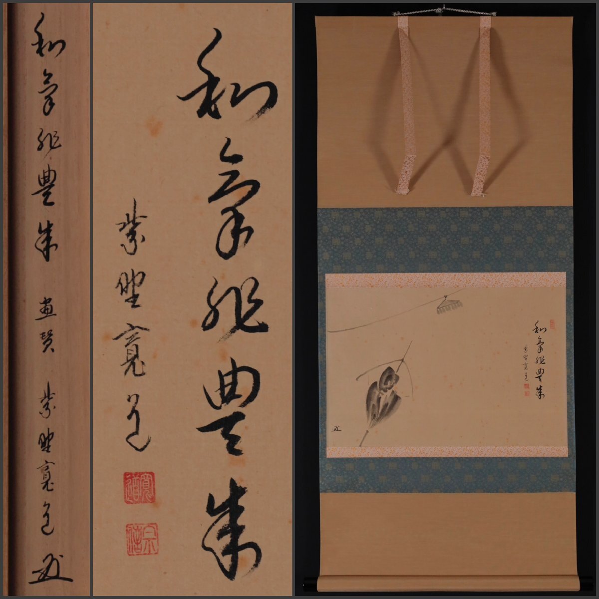 > 【模写】吉】12577 藤田寛道 案山子画賛「和気兆豊年」 共箱 小田雪窓 方谷浩明師事 臨済宗 大徳寺 雲林院 宗信 仏教 掛軸 掛け軸 骨董品