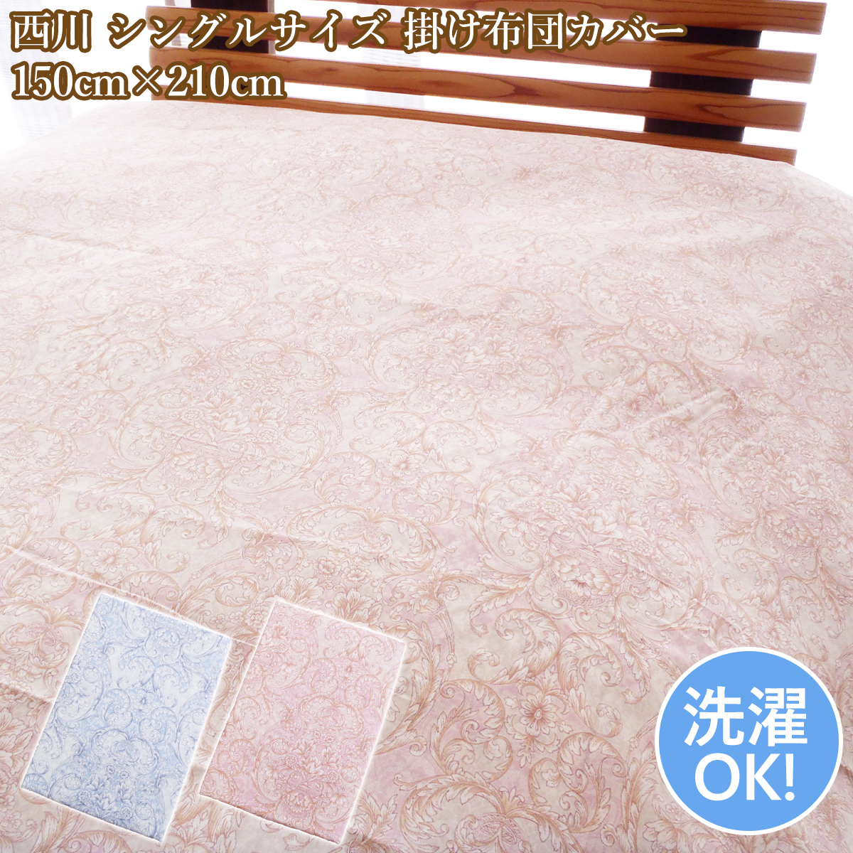 - 西川 掛けカバーシングル 布団カバー 150cm×210cm 全開ファスナー 8か所ひも付き