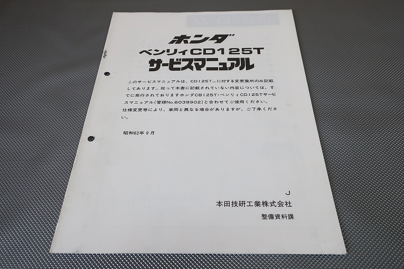 > 即決!ベンリィCD125T/サービスマニュアル補足版/J/ベンリー/ベンリイ/配線図有(検索:カスタム/レストア/メンテナンス/整備書/修理書)/201