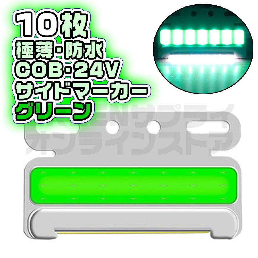 - LED 24V 極薄 サイドマーカー 10個 グリーン COB 防水 緑