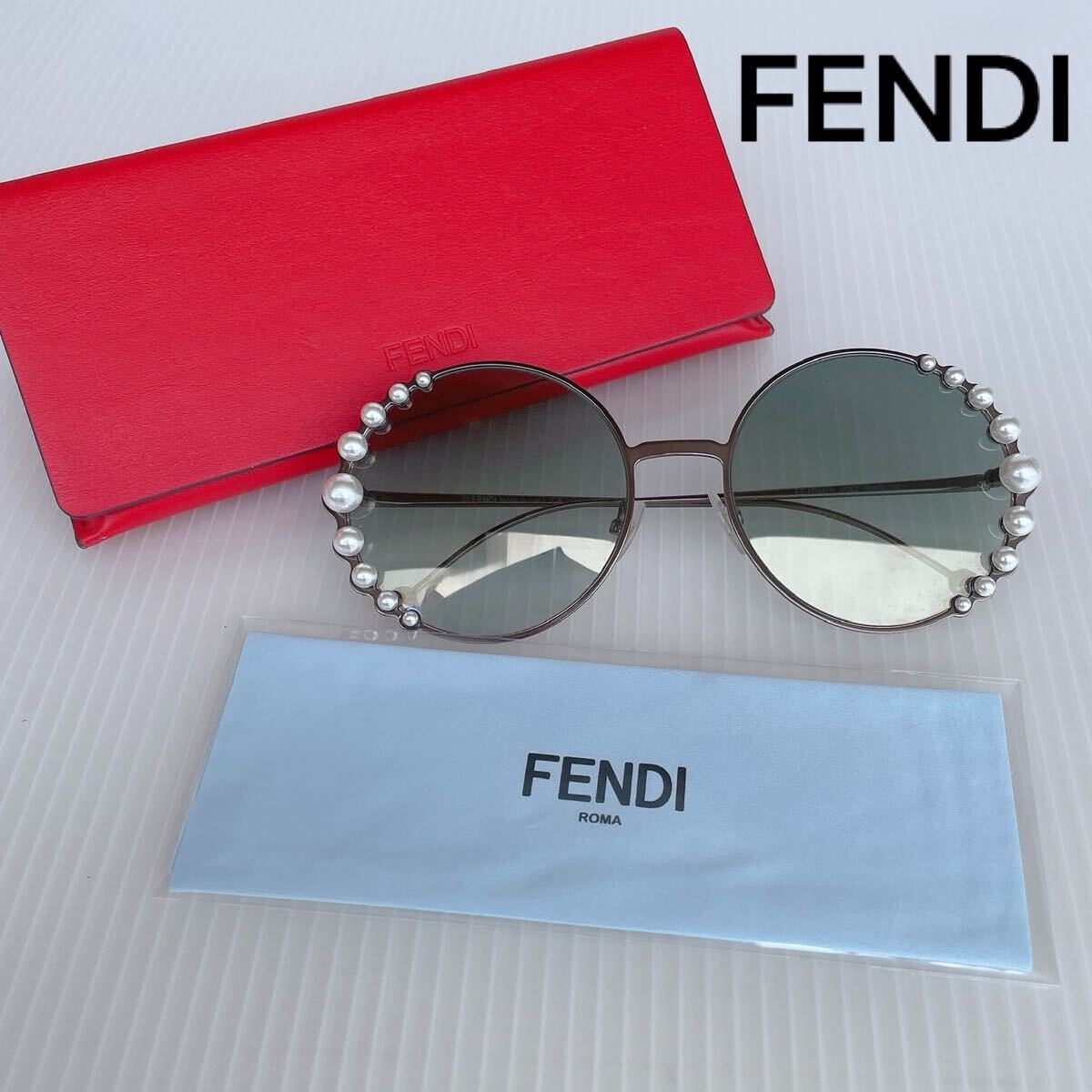 - FENDI フェンディ 人気タイプ パール装飾 サングラス アイウェア 眼鏡 メガネ ラウンド 丸型 イタリア製 レーディス 極美品