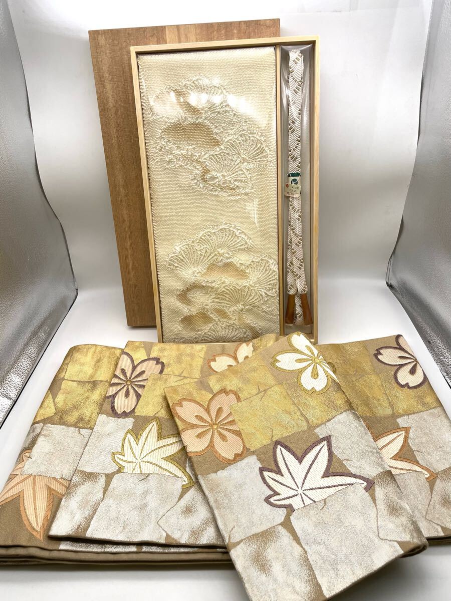 - 礼装●正絹 袋帯 全通帯 金糸 しぼり帯揚げ 平織帯締め