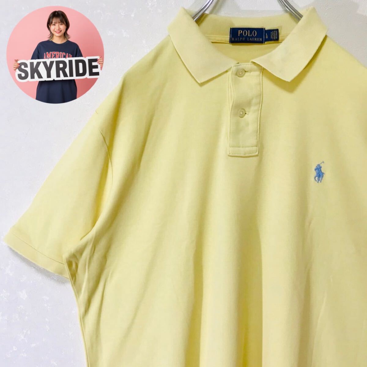 - 定番 POLO RALPH LAUREN ポロラルフローレン ポニー刺繍 ワンポイントロゴ ポロシャツ イエロー Lサイズ #TT0244