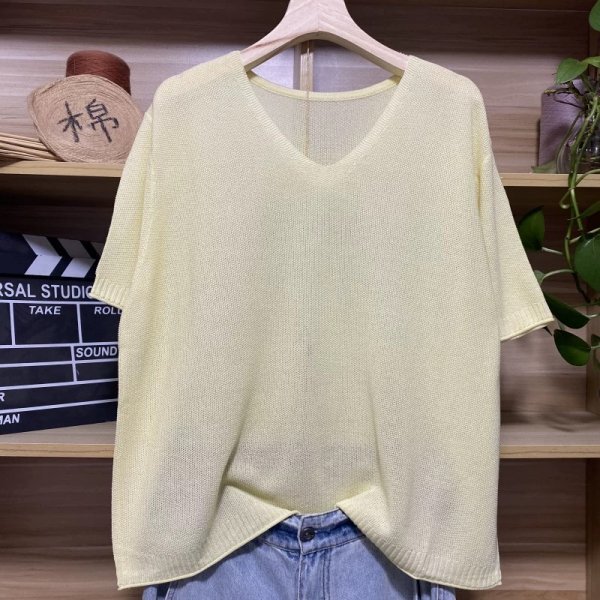 > 25zy サマーニット シンプル トップス 高質 ラフ 麻タッチニット チュニック ナチュラル 麻混 サラサラ 涼感 Vネック6