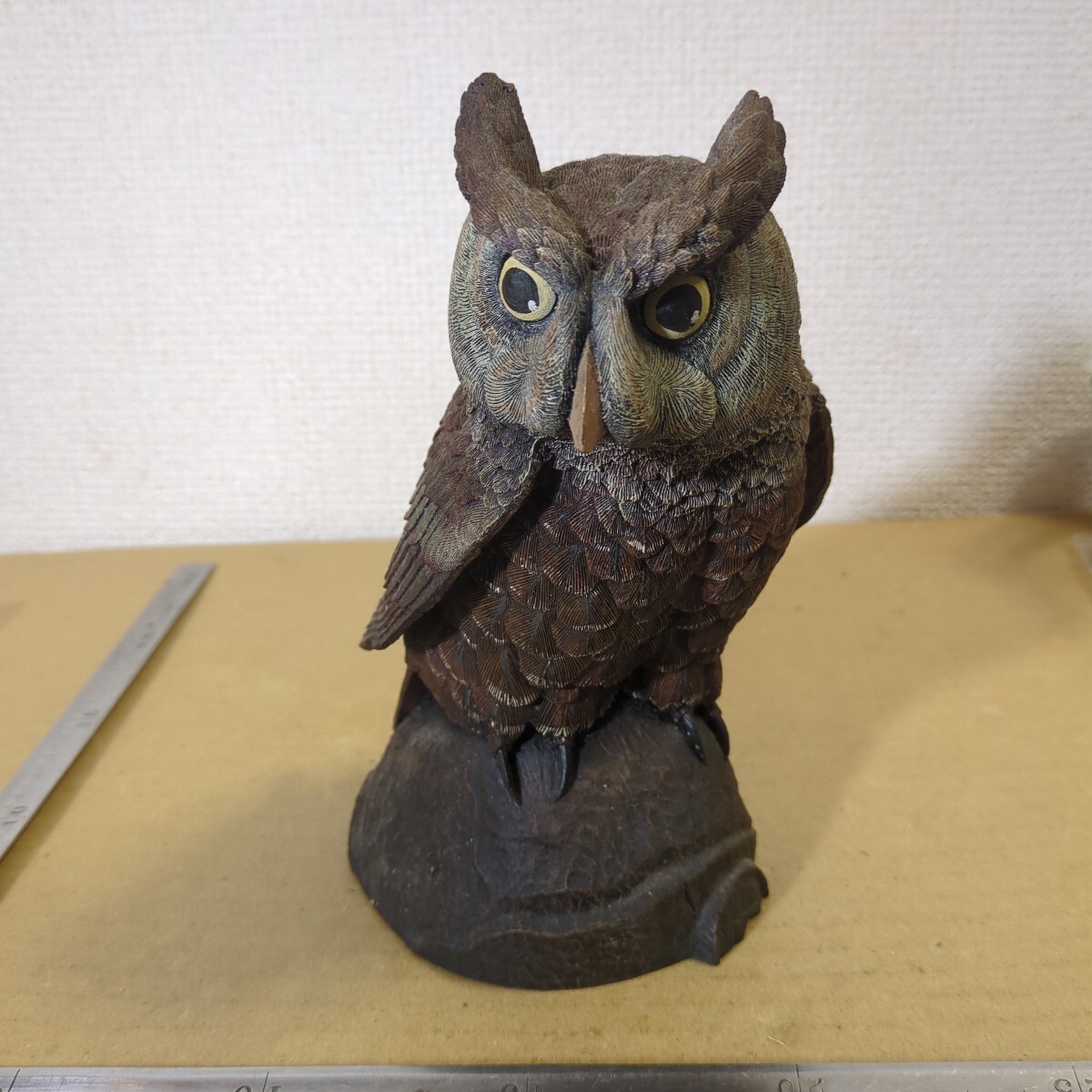 > ☆刻印有り ☆真偽不明 ミミズク フクロウ フィギュア 置物 オブジェ 高さ約19㎝ 1984年製? 樹脂製 未チェック ジャンク扱い 彫刻