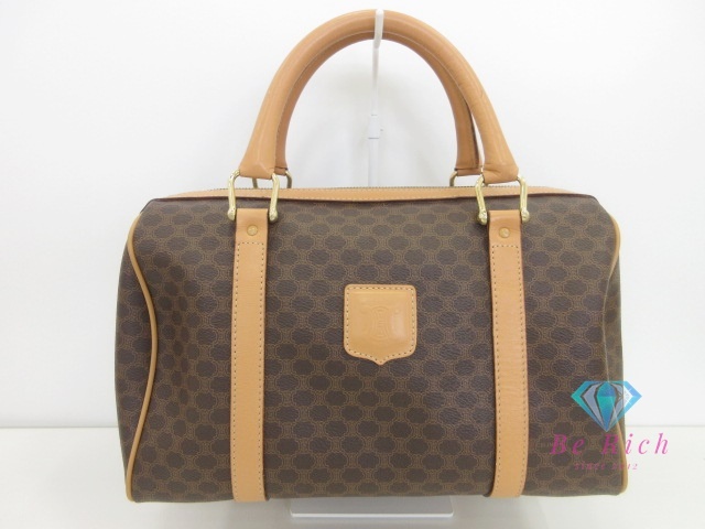 > セリーヌ CELINE ミニ ボストンバッグ ハンドバッグ マカダム PVC レザー M14 ブラウン 茶 ブラゾン ロゴ 【中古】【送料無料】 bk10101