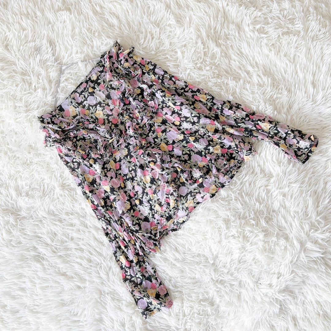 - 《ジプシーブルー》 (M) フリンジフリルVネックブラウス コットン 花柄 韓国