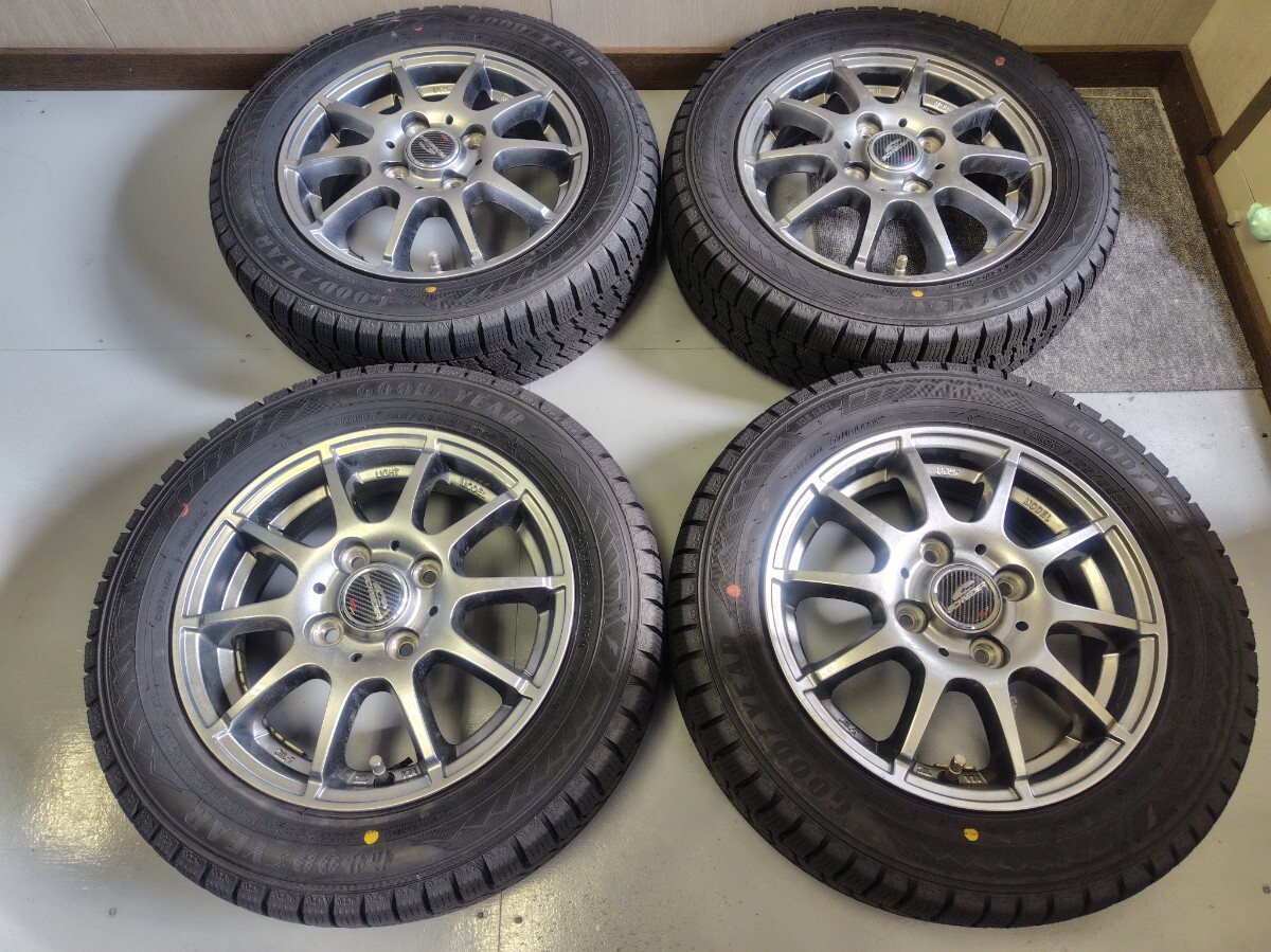 > 中古タイヤホイール GOODYEAR ICENAVI8 155/65R13 73Q A-TECH シュナイダー 13×4j 4H100 +42 バリ溝 軽自動車等 送料込み X245