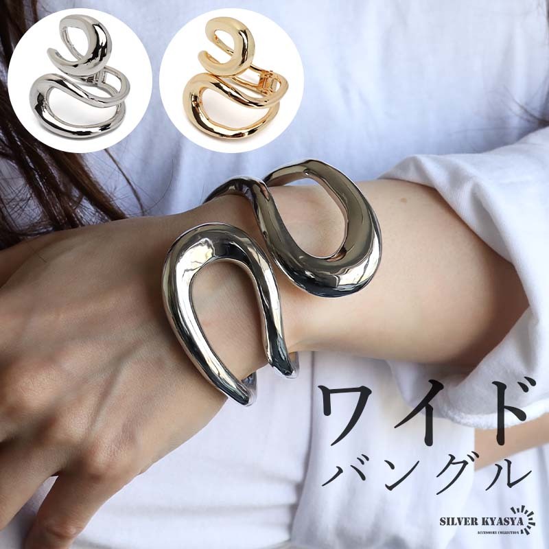 > (シルバー) ワイドブレスレット 欧米で人気 腕輪 ワイドバングル シンプルバングル 幅広 メタル 開閉式
