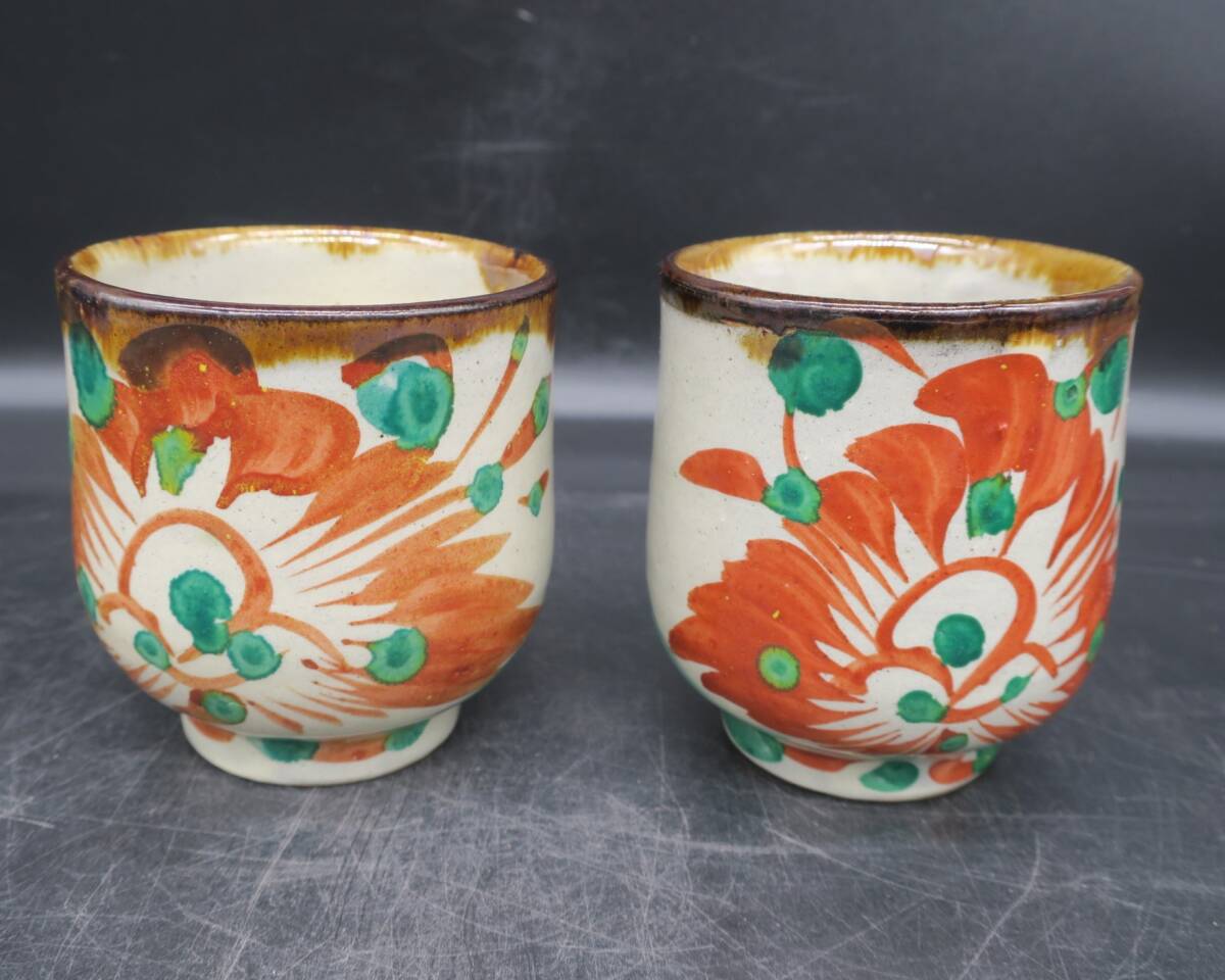 - 【小橋川製陶所/仁王窯/琉球赤絵組湯呑】小橋川仁王
