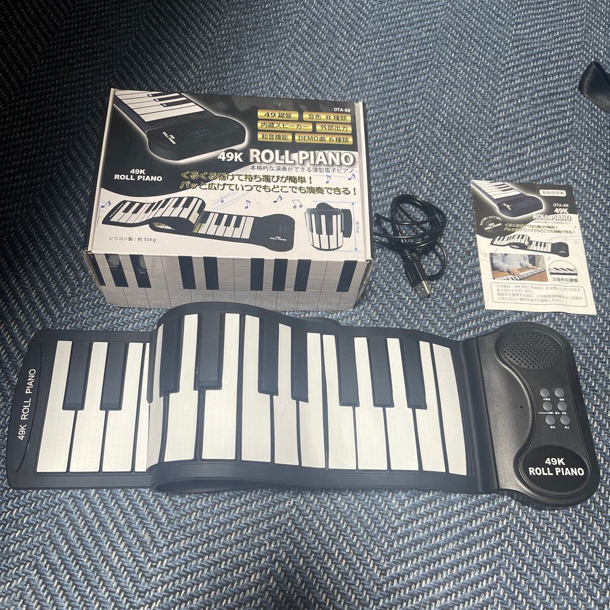 > 49K ロールピアノ ROLL PIANO 49鍵 薄型電子ピアノ 約554g ロールアップピアノ シリコン製 キーボード コンパクト 折り畳み式