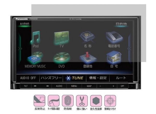 > 10-03-01【7インチ】Panasonic CN-RA06WD/CN-RA05D/CN-RA04D/CN-RA03D/CN-RE03D用 反射 指紋 抗菌 気泡ゼロ液晶保護フィルム