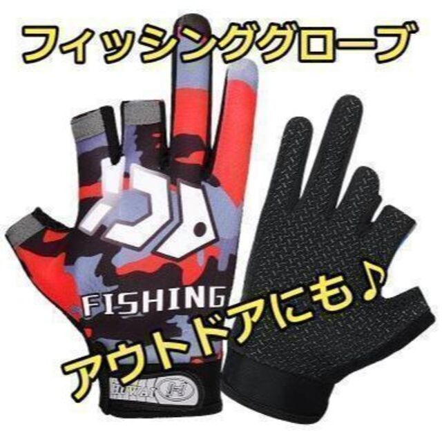 - フィッシンググローブ (赤)3本指カット 滑り止め アウトドアにもOK!!