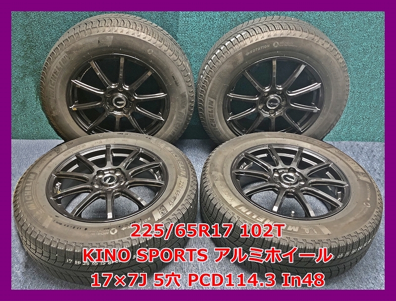 - 2018年製 225/65R17 102T ミシュラン X-ICE3+ 中古 スタッドレス/ KINO SPORTS 中古 アルミホイール付 4本 5穴 PCD:114.3 IN48