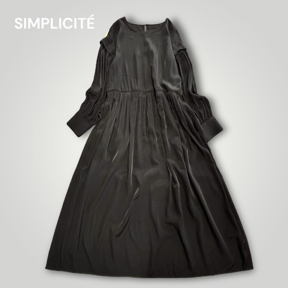 - 1905【SIMPLICIT/シンプリシテェ】大人可愛い ゆったりロングスリーブワンピース ナチュラル ブラック 黒 ベイクルーズ オケージョン
