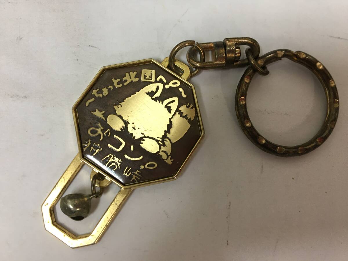 - ★平成レトロ★送料無料★ちょっと北国へ!「おコンの狩勝峠 キーホルダー 」北海道 キタキツネ ご当地 観光 土産物 (白い恋人缶保管)