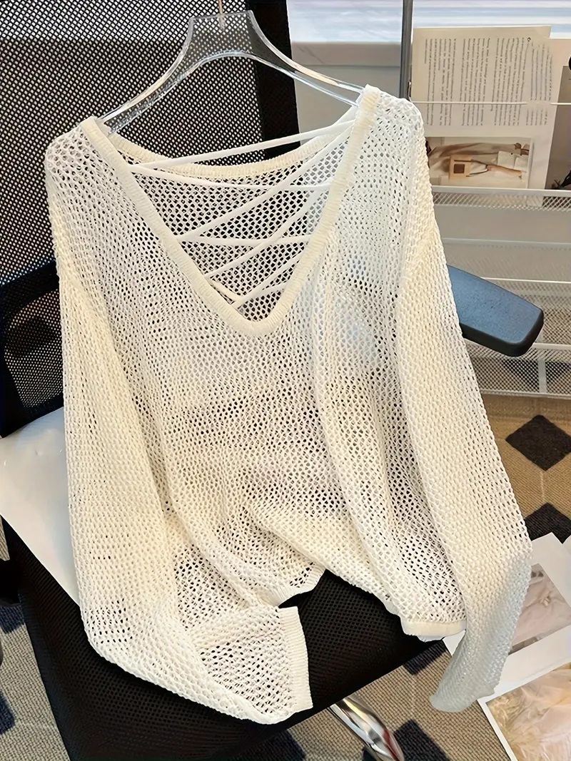 - カットソーアウトメッシュクロスオーバー男女兼用ユニセックスルーズウェア春夏涼しいセーターゆるふわであとはボトムで完璧なデザイン人気