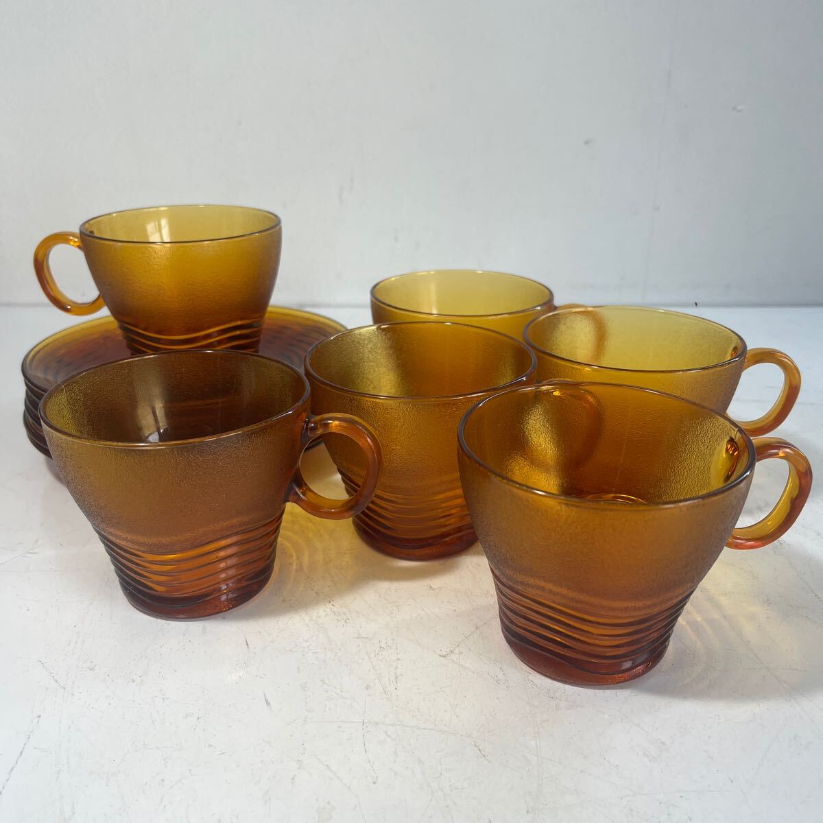 - DURALEX デュラレックス FRANCE フランス ガラス アンバー カップ&ソーサー 6客セット まとめて 茶器 食器 ヨーロッパ ビンテージ