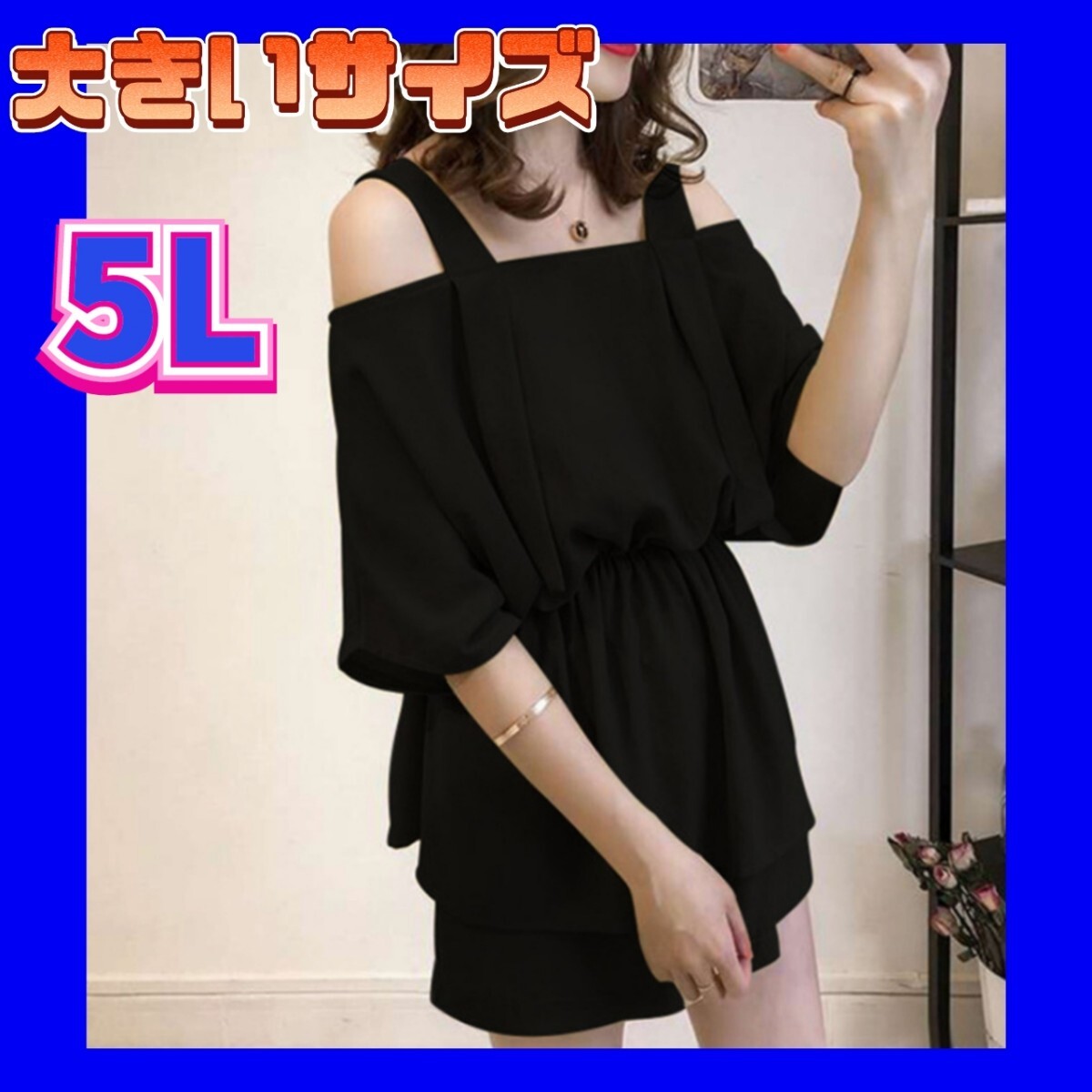 > セットアップ ブラウス オフショルダー ミニワンピース ツーピース 新品 大きいサイズ 4XL 5Lサイズ