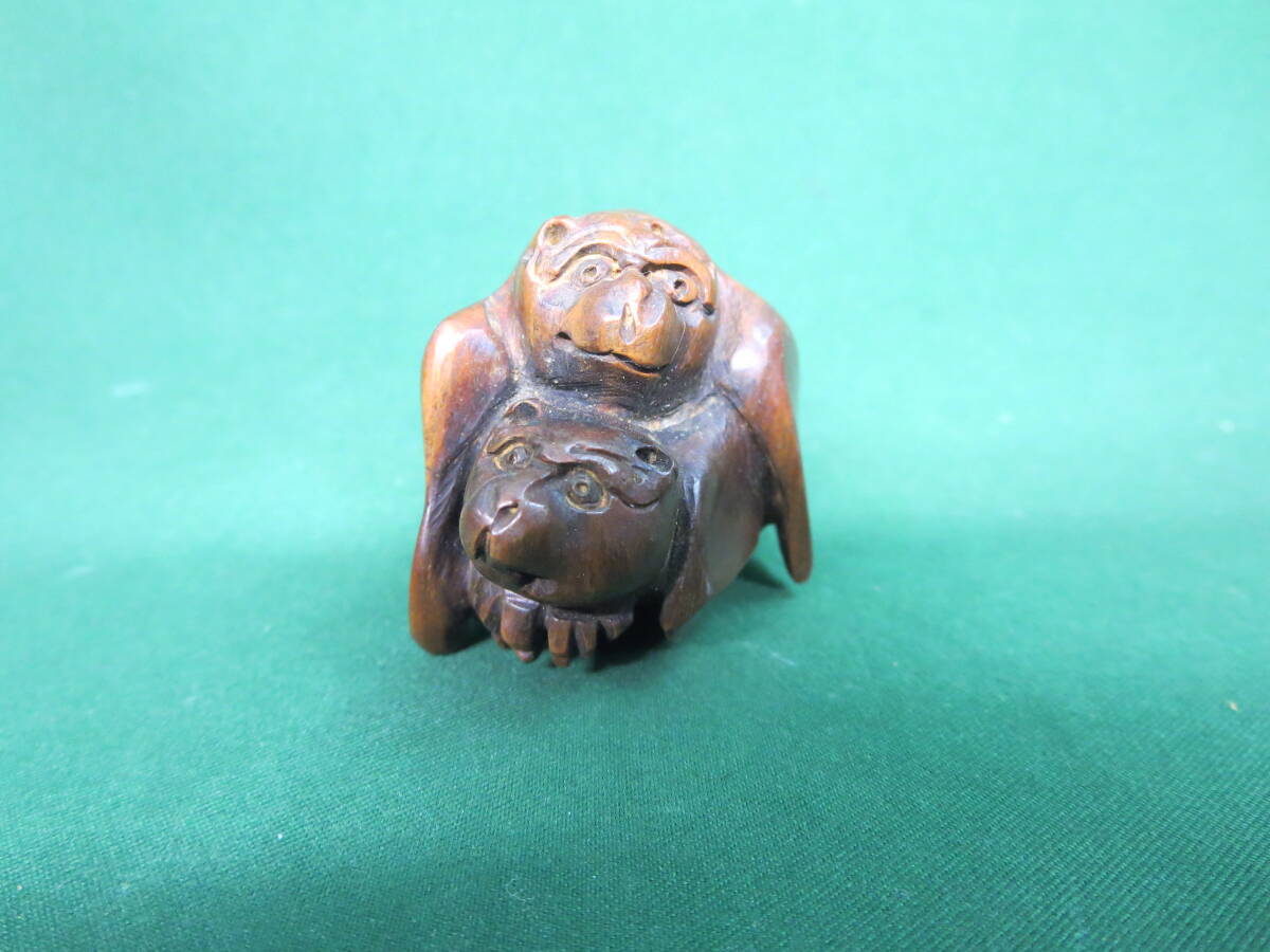 - 送料無料 根付 茶 木彫 コウモリ 蝙蝠 古根付 印籠 煙草入装飾具