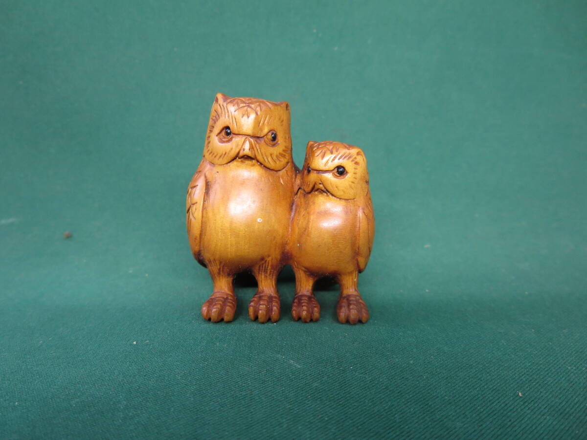 - 送料無料 根付 茶 木彫 フクロウ ふくろう 梟 古根付 印籠 煙草入装飾具
