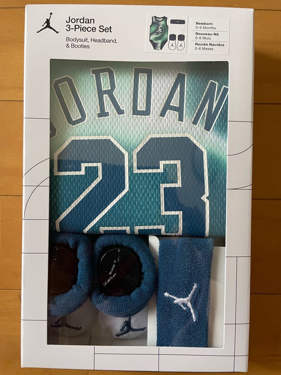 > 新品未使用 0-6M 60~70(65) JORDAN BRAND(ジョーダン) NIKE(ナイキ) ロンパース 3点セット ベビーボックス 出産祝いにも 即決