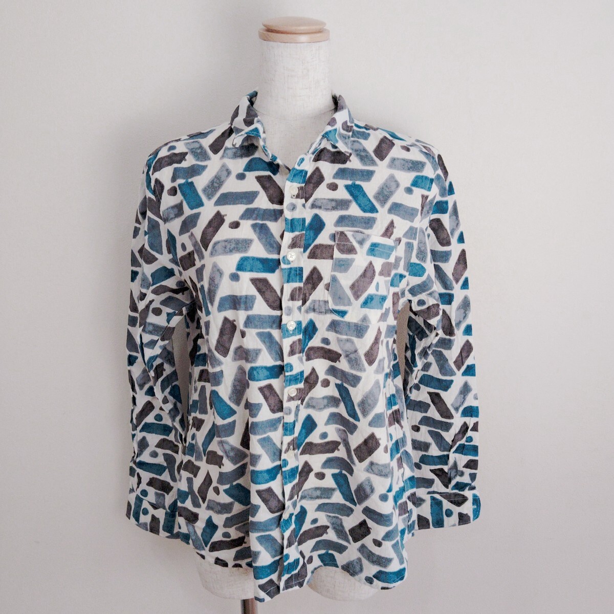 - 0715/ M/CALINER レディース 長袖 シャツ ブラウス 総柄 白